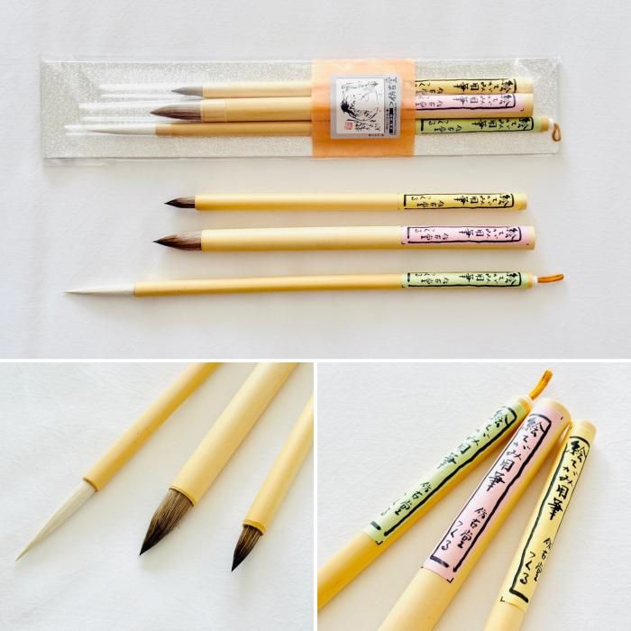 【セット内容】絵てがみ用筆(線書き筆) / 絵てがみ用筆(彩色筆 大) / 絵てがみ用筆(彩色筆 小)