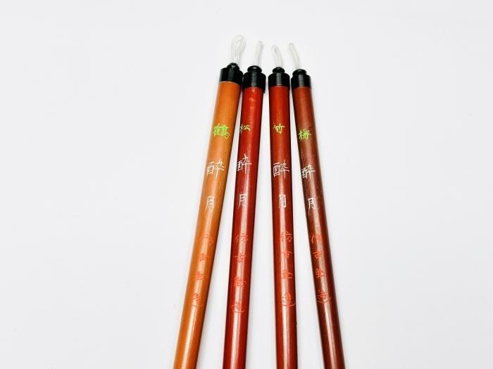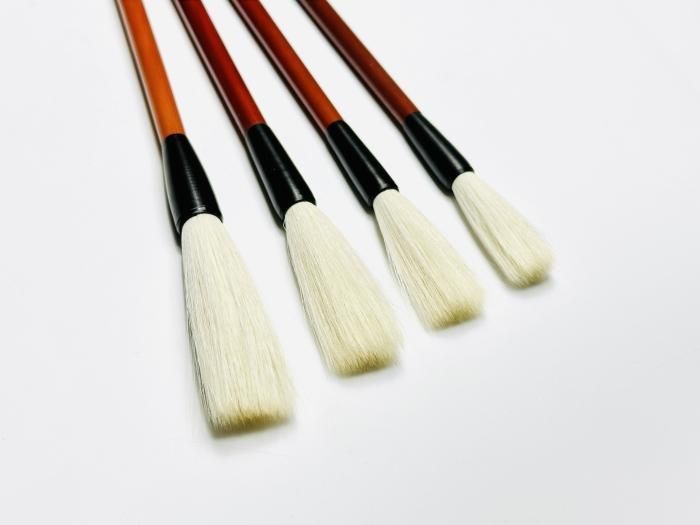 この価格帯としては非常に上質な純羊毛筆。柔らかめで、含墨、まとまりとも良い。初心者が使いこなすのはやや難しいものの、腕を磨くには最適漢字 作品向き